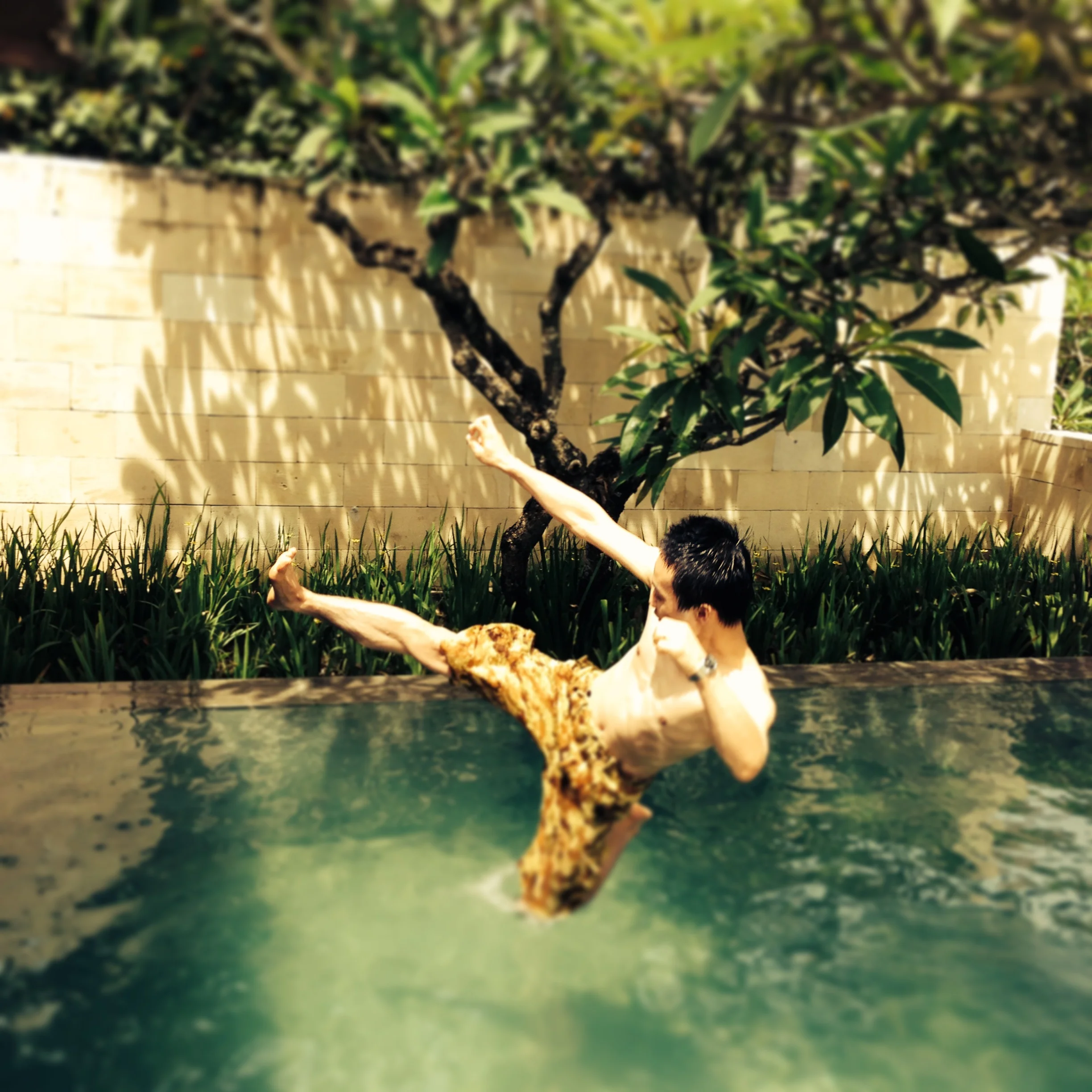 でここで半日過ごして晩飯もちょっと食べてみたんですけど、ちょっと飯が臭かったかな、残念。ここにあるプライベートプールでこんな遊びをしていましたので、一応載せておきます。